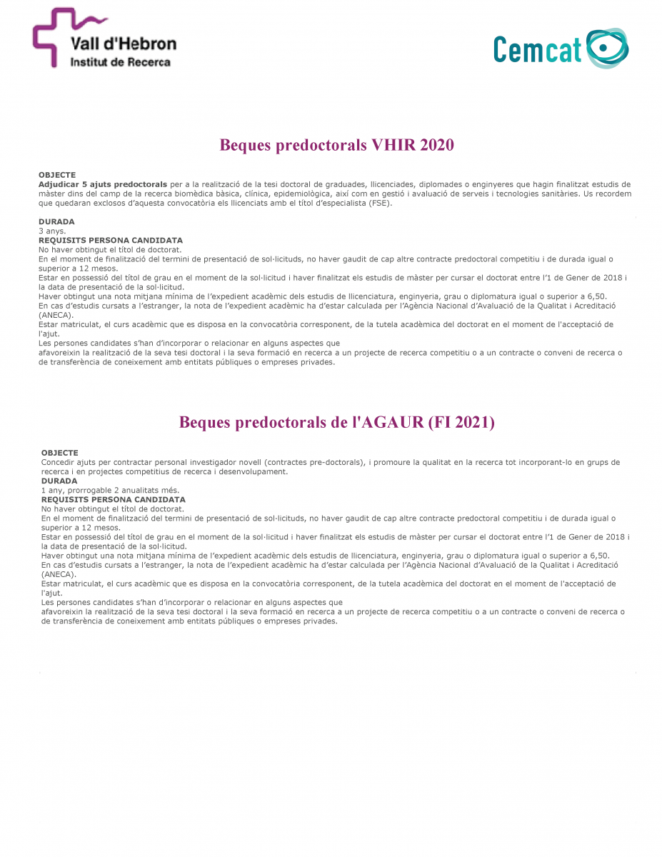En Cemcat buscamos investigadoras/es interesadas/os en la patogenia de anticuerpos MOG en pacientes con sospecha de enfermedad desmielinizante para optar a la convocatoria de becas predoc AGAUR/VHIR. Envía tu CV a <recursos.humans@cem-cat.org>.